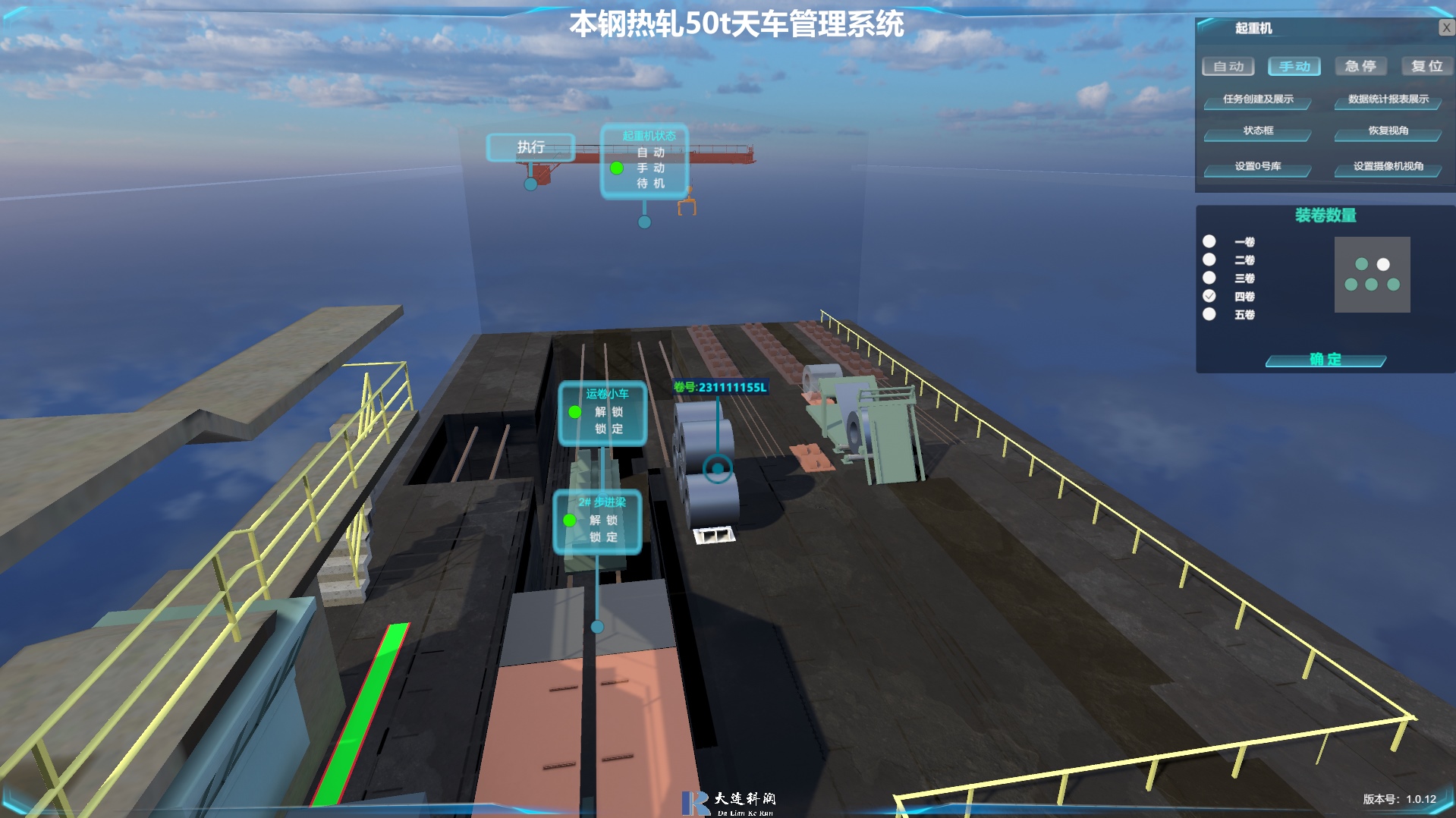 應用矢量變頻控制技術、定位技術和電子防搖技術來控制起重機運行,應用設備運行管理軟件、庫房管理系統來實現設備自主運行和物料管理,以中控室控制平臺、網絡遠端控制技術來實現近距離和遠端控制、監控起重機的操作,實現車間無人化管理。